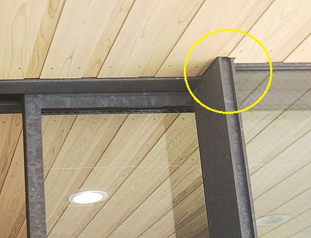 せっかく無節の材料使ってるんだから、もうちょっと納め考えて「隠し釘」にするとか「フィニッシュネイル」位で釘頭隠せばよかったのに・・と。
