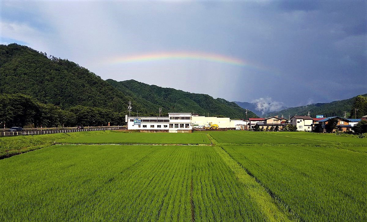 雨あがり、田んぼキレイ、虹キレイ@会社