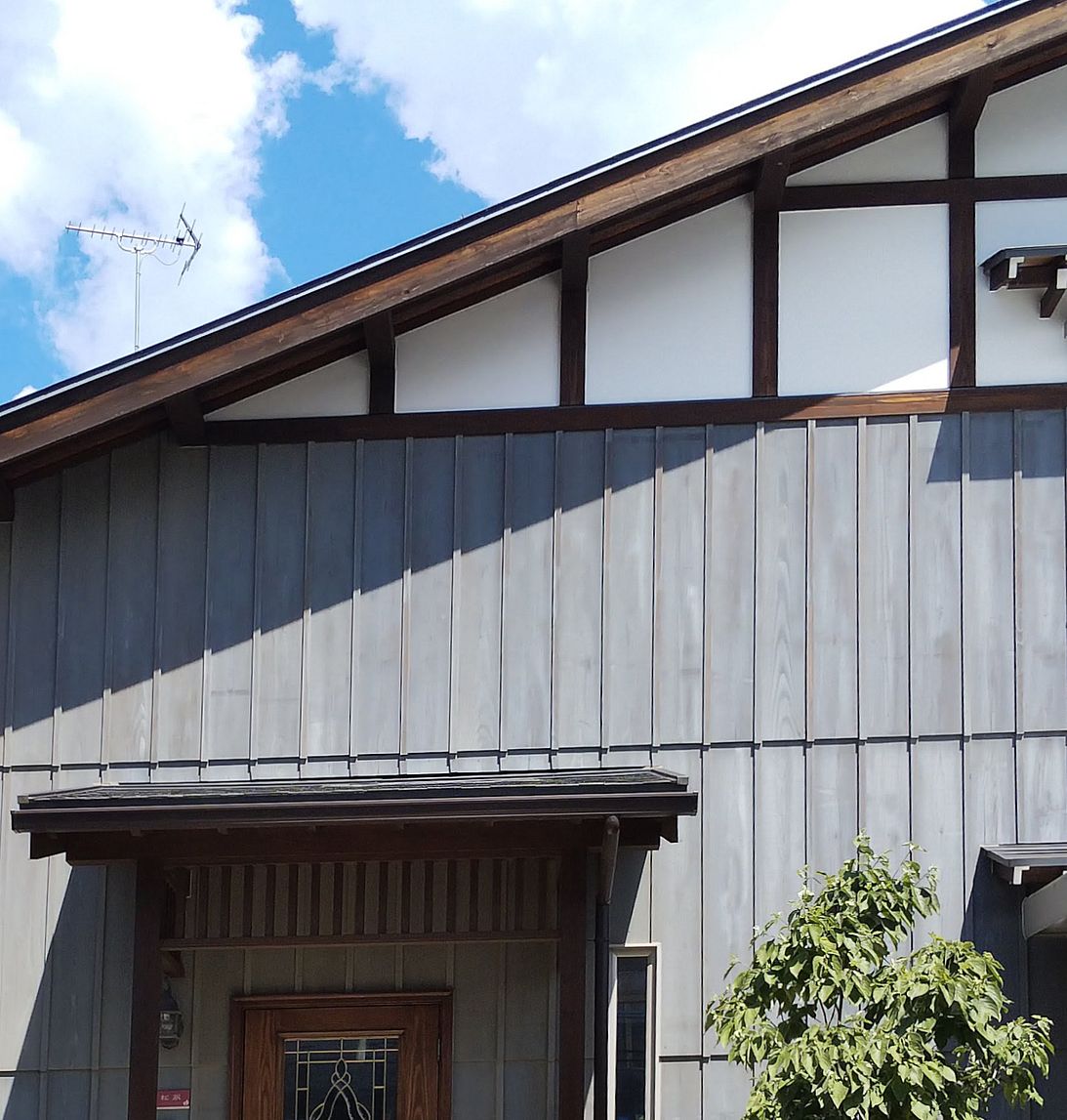 これ窯業サイディングだと 10年内外で再塗装しないと透水してボロボロになりますが、木材なら放りっぱなしでOK。