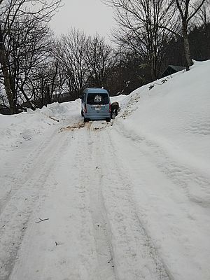 ひとり雨降る雪山と格闘してた工務店女子約一名
