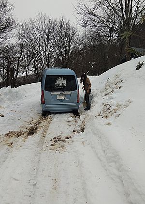 雨が降ってザクザクの圧雪。坂道に15㎝もあれば四駆でもスタックするから過信禁物。