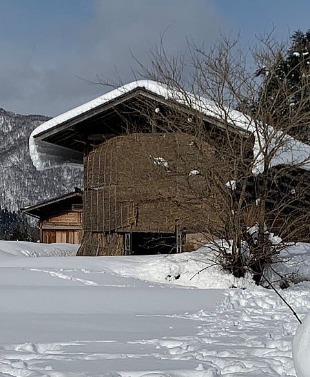 垂直積雪量で言うと 一度1.5m位積もった屋根なのですが、1回雨降って晴天の日もありまして、押しつぶされた分だけ背は低くなっています。