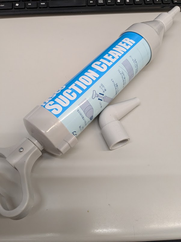 空調の不具合は大抵冬季なんだけど、市販エアコン+ダクト冷房にて「エアコンが水吹いてます!」先日洗浄して貰ったとかで、どうやら高圧でドレンにゴミ送ったらしい。サクションポンプ手元に無かったのでHCで買って梯子持って いざ出陣。