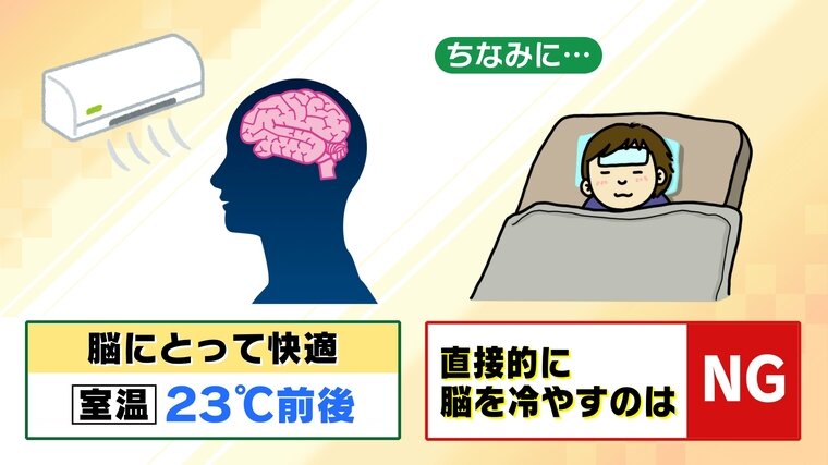 寝ている間も脳を冷やし続けることが大切。と言うより熱を持たせない様、寝ている間もエアコンをつけて部屋を冷たくしておくことが大事となります。
