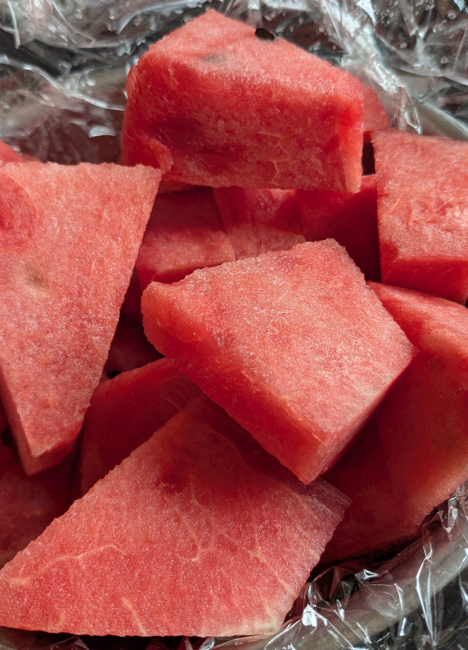 冷蔵庫でキンキンに冷やした半玉で、お腹パンパンの朝。畑の恵み有難う。