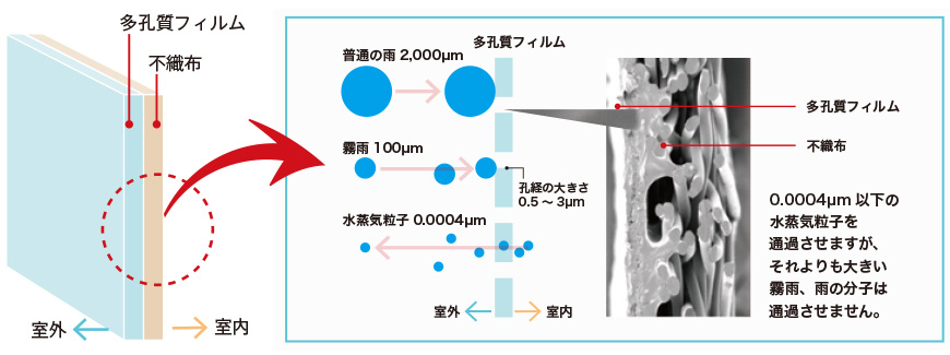 こちら特殊構造によりJISA6111:2016の耐久性 Ⅲ-1(50年相当)に準拠する耐久性能を 持った透湿防水シート。