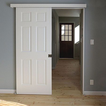 さてこの引戸「アウトセット」と言って、引き込み部分の壁には触らず、壁の外側で可動する建具になります。