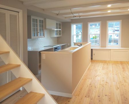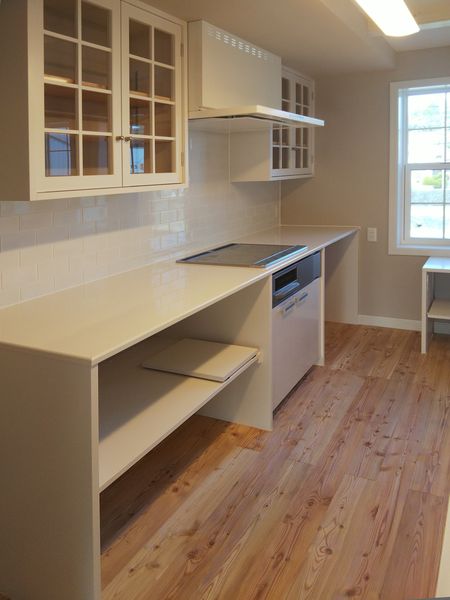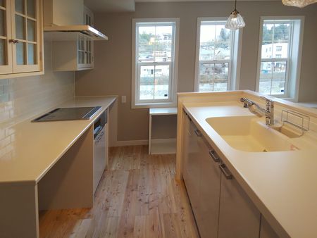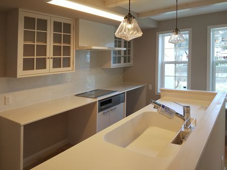 シンクと加熱器を背中合わせにして シンクカウンターを広く使えます。
