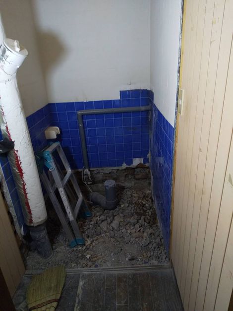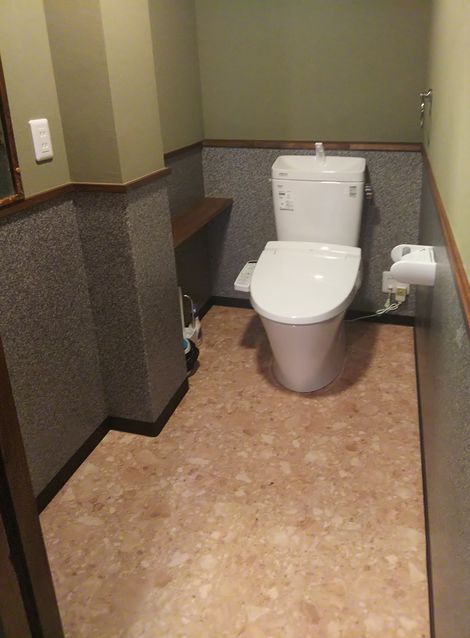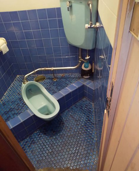 なつかしい タイルの和式トイレを洋式トイレに変更します。