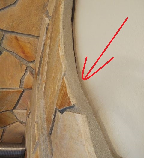 ちなみにストーブ後ろに張り上げた「乱張り石」ですが、躯体とは18mm以上空かしてあります。