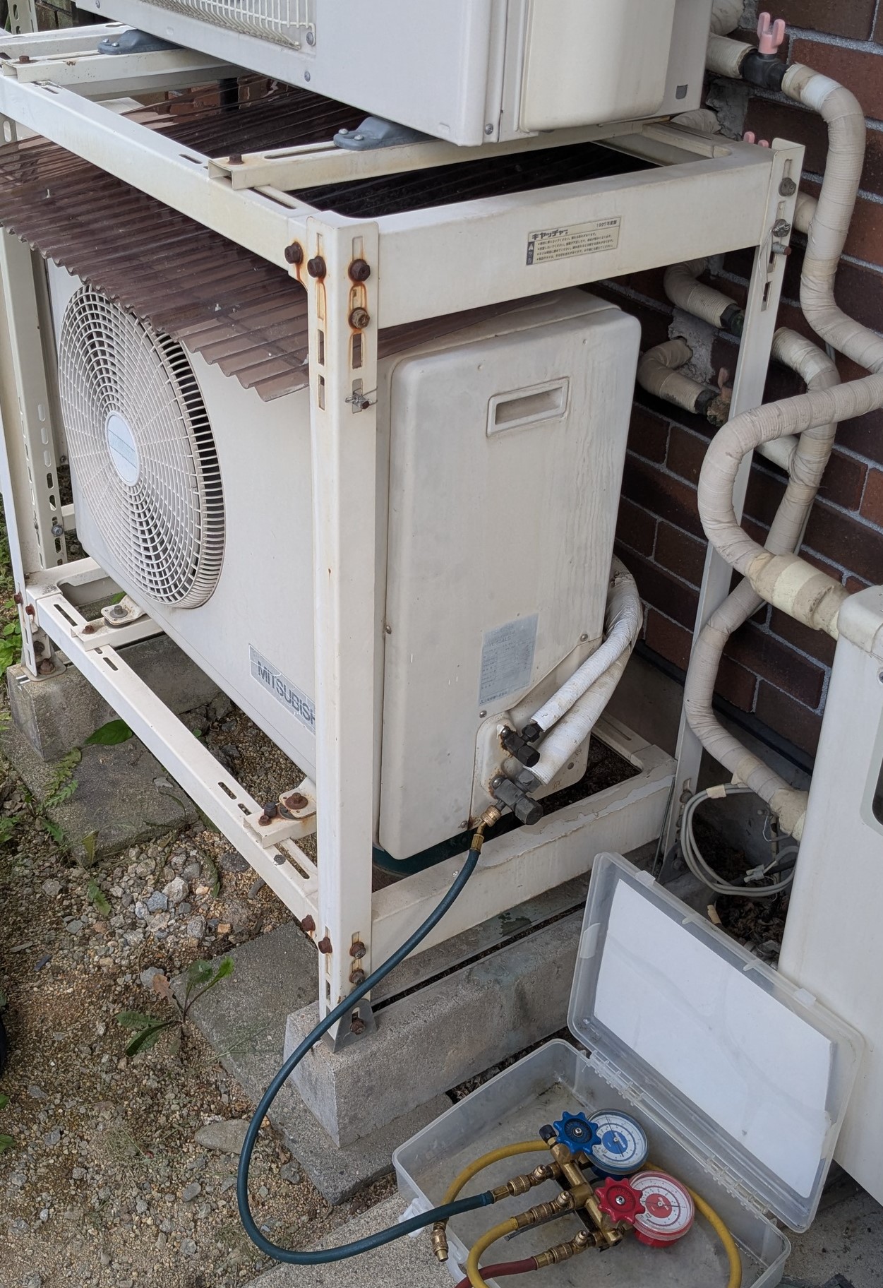 空調機の入れ替え。屋根断熱との事で天井裏見ればB-Ⅲ種50mmが母屋間のみ。謎の外張り断熱が流行った頃の建物で、通気無しの設計事務所案件・・うーん。