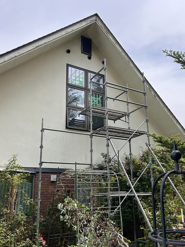 こちら外部はサンドカラーなんだけど 丸印が今回入れ替えた新品窓。