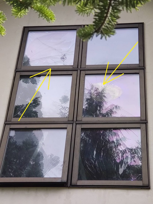 HURD木製アルミクラッド窓、コンビネーションのFIX2枚破損により交換(火災保険対象)