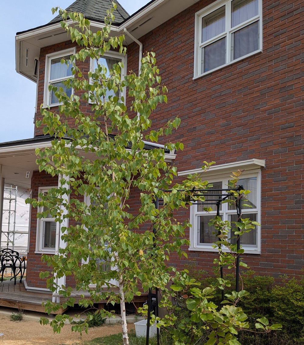 クライアント邸。シラカバなんて植えた記憶ないので聞いてみたら「知らない間に育ってました」と。種が飛んできて自生したらしい・・えっまぢでww