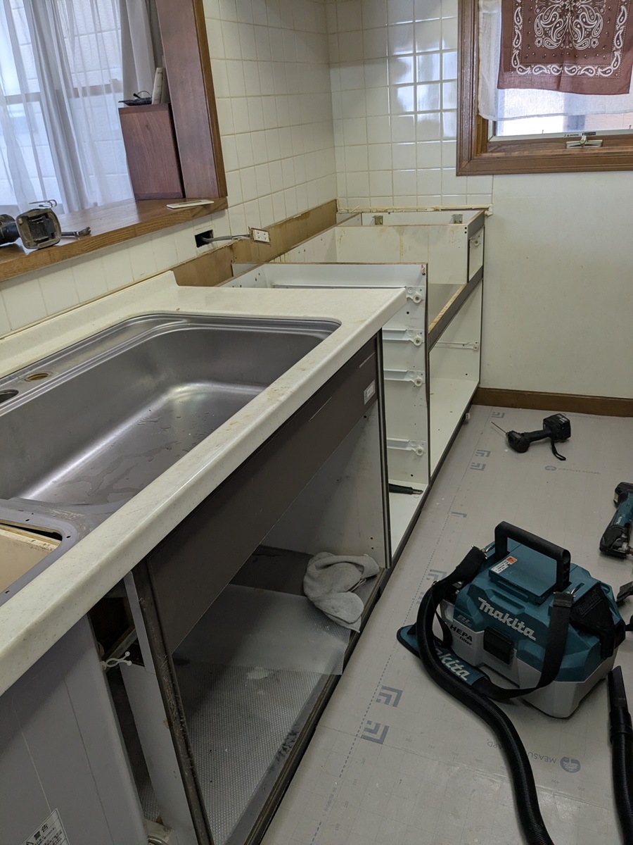 本日2台目のキッチン撤去。カツカツすぎてカウンター外せなかったのでカットの図。