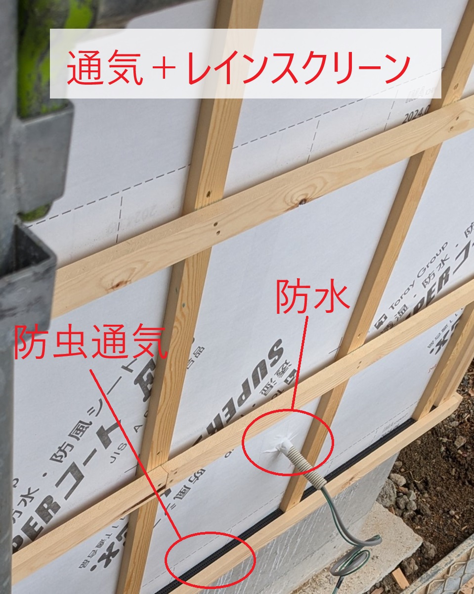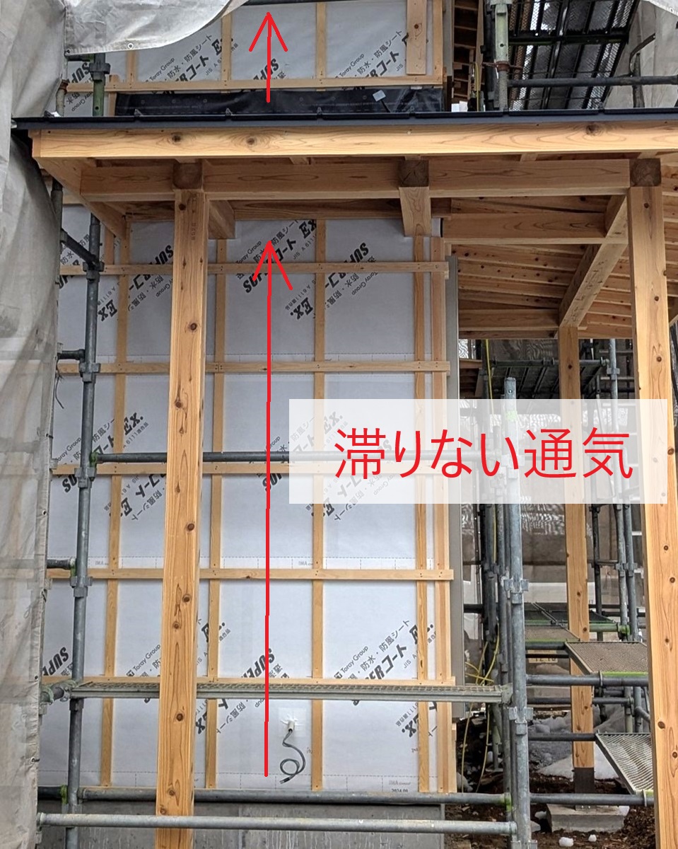 矢印の桁部分は乾燥木材(こちらは合板)で留めます。