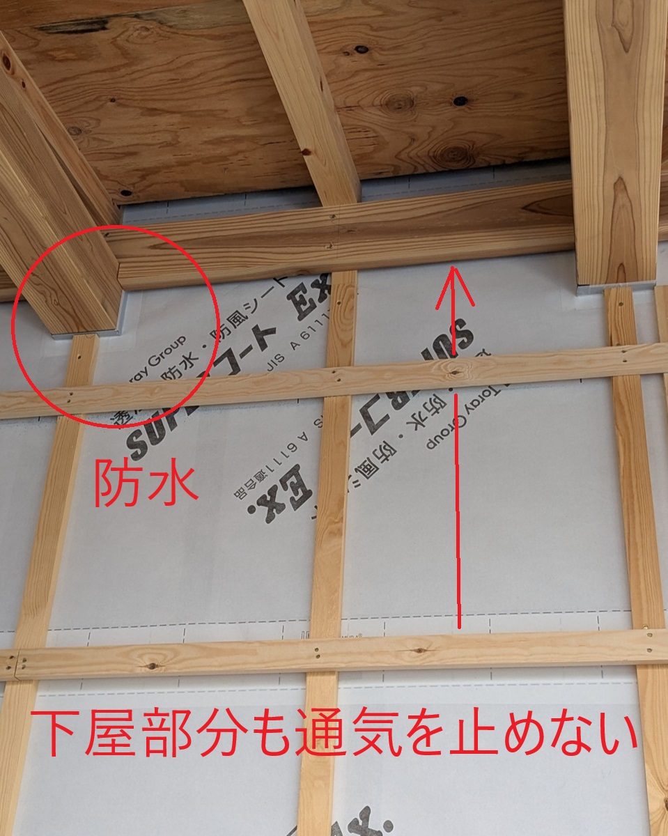 なので桁上断熱として 合板上にも断熱施工を行います。