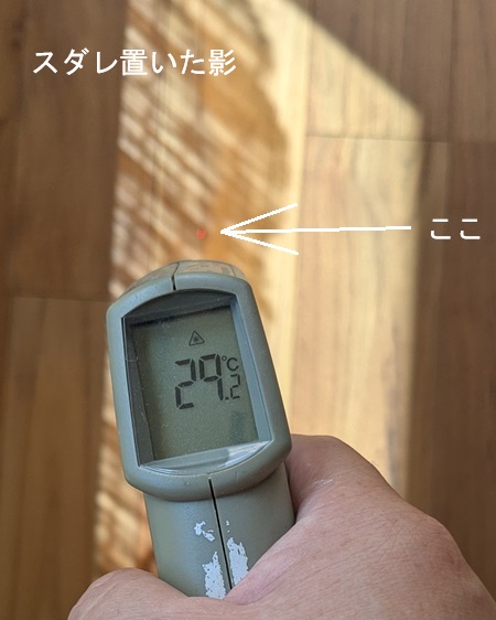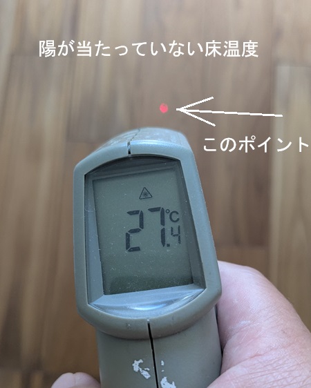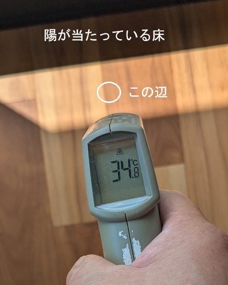 前日の陽が当たっていた床温度と比べると10度も違うやん。