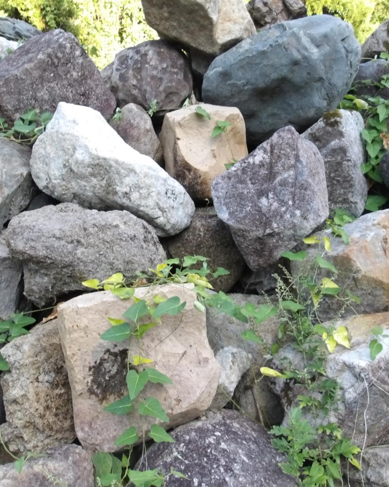 庭の法面に埋める石を見に。