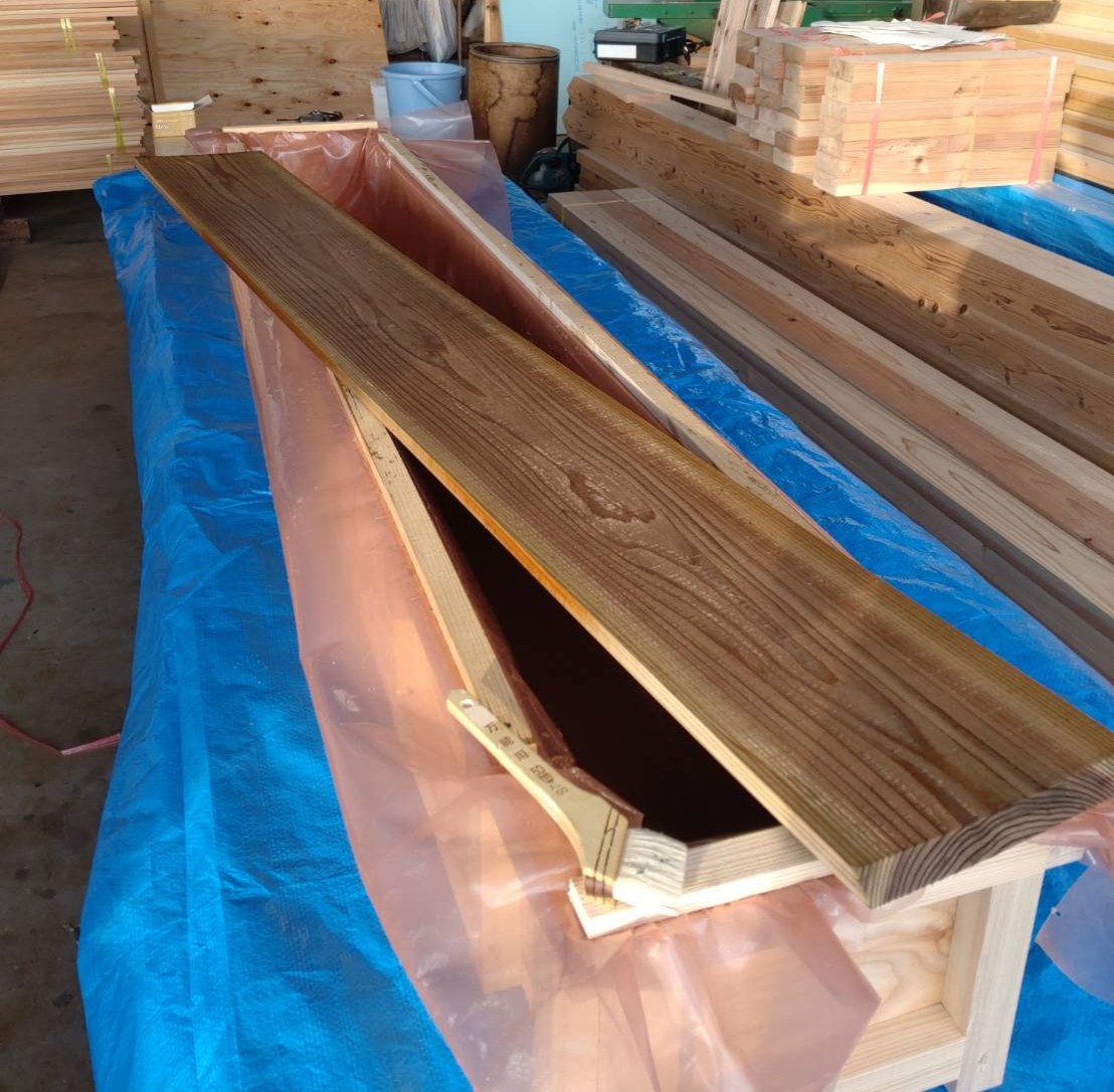 やっぱ積層材の木口を上に向けて外部になんて