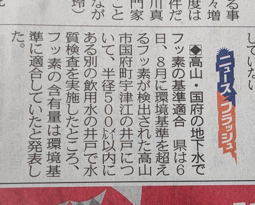 環境基準を超えるフッ素が検出された地下水。
