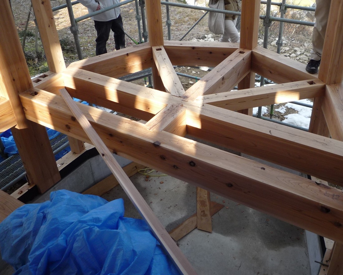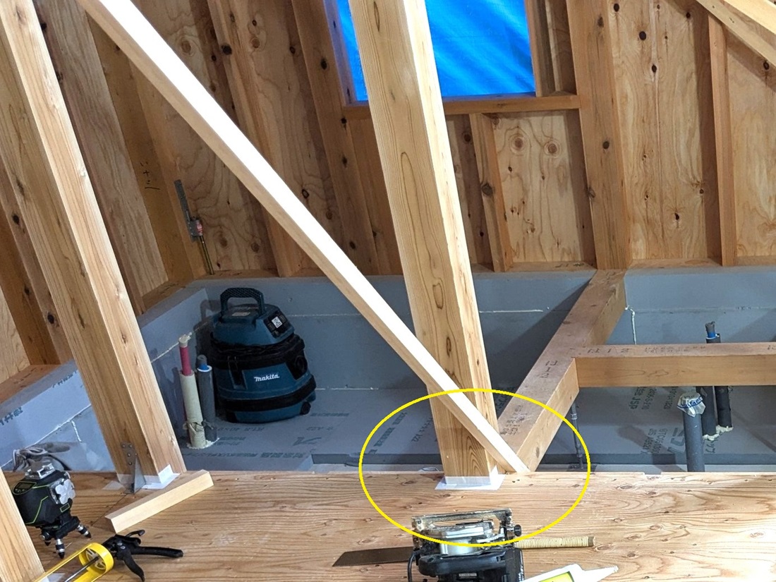 ちなみに ↑ 画像は桁上部に合板を張って水平構面として
