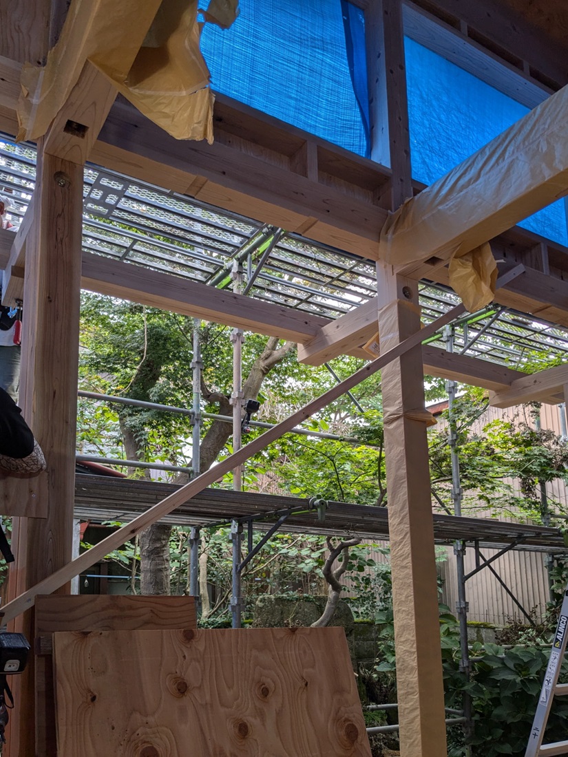 そしてその上に垂木を並べて「二重屋根」にするのですが