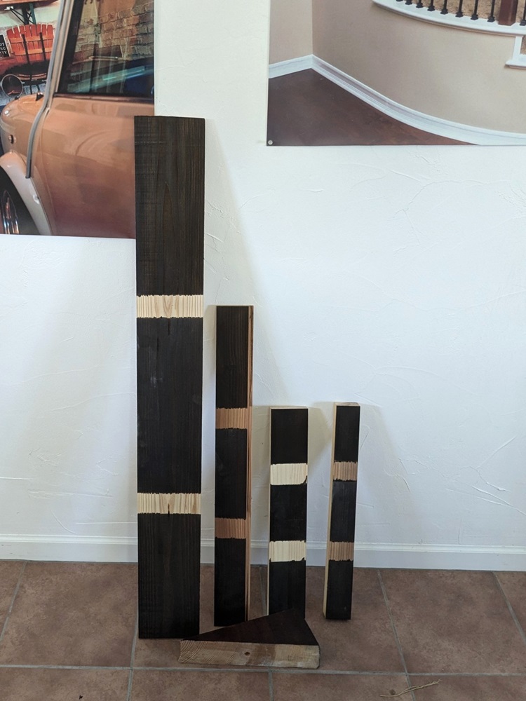 微妙に違う色でフィニッシュを変えたサンプル。樹種でも色の出は異なる訳で。