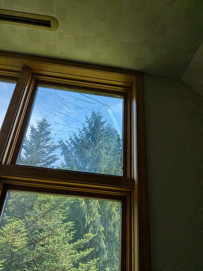 三層のうち一枚ガラス割れ。さてUS照会して交換の段取りしますか。保険使おう。