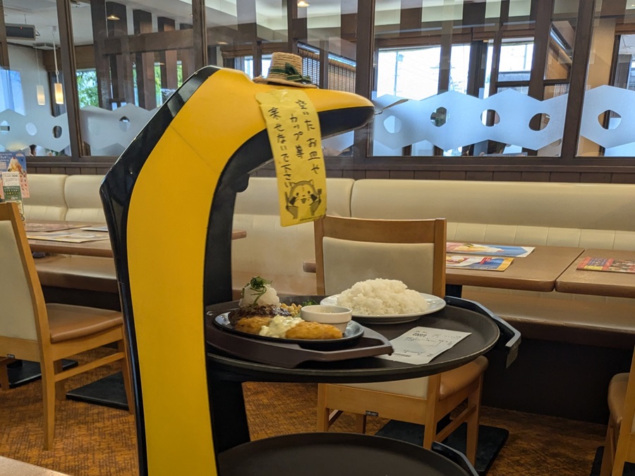 今日お昼の時間無くて移動中にと思えば現金が無い・・スマホ決済できるトコ探すとファミレス。初めて入ったけど、最近は音楽と共にオートで運んで来るのね「鉄板は熱いのでお気をつけ下さい」とか喋って感心してたら、カキ氷運んで来ても同じこと言ってたw
