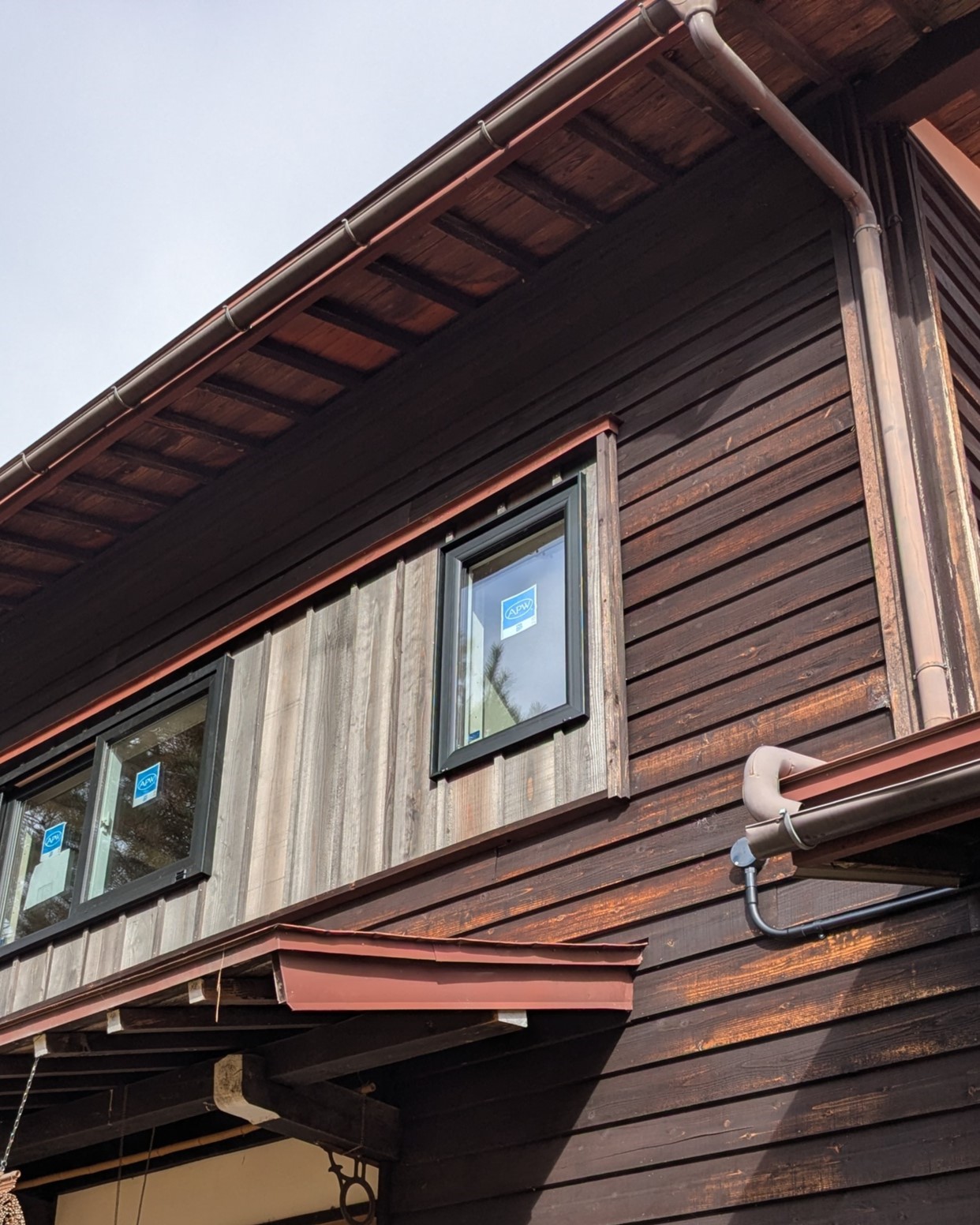 リモデルで同じ色浸透させても、経年すると光の当たり具合で見た目これ位違う。素材的に許容出来る出来ないは結構違うと思うけど、木材の変化ならアリかと(持続可能性とは)