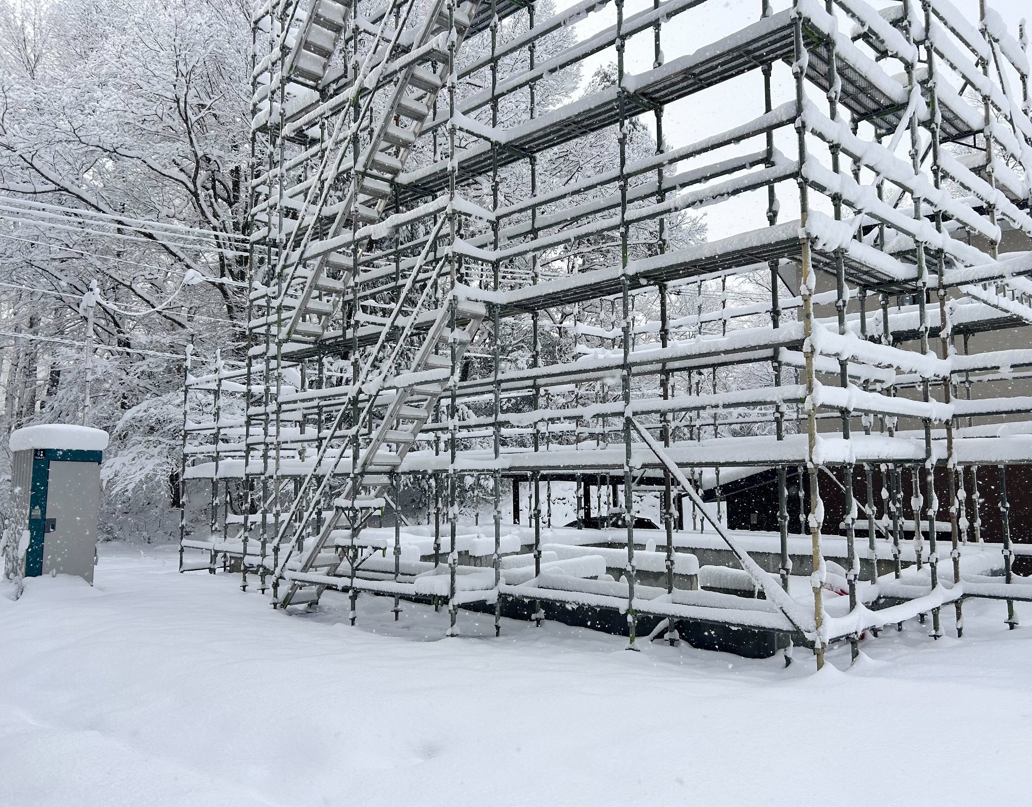 吹雪の中で朝風呂からのリモデル現場スタート。梁下まで1900mm無いと言うエモさ優勝。
