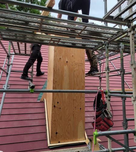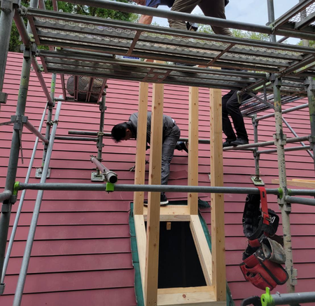 別荘に薪ストーブ新設につきチムニー造作。