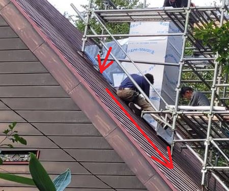 ちょっと遠回りだけど 足場無しでダクト工事。