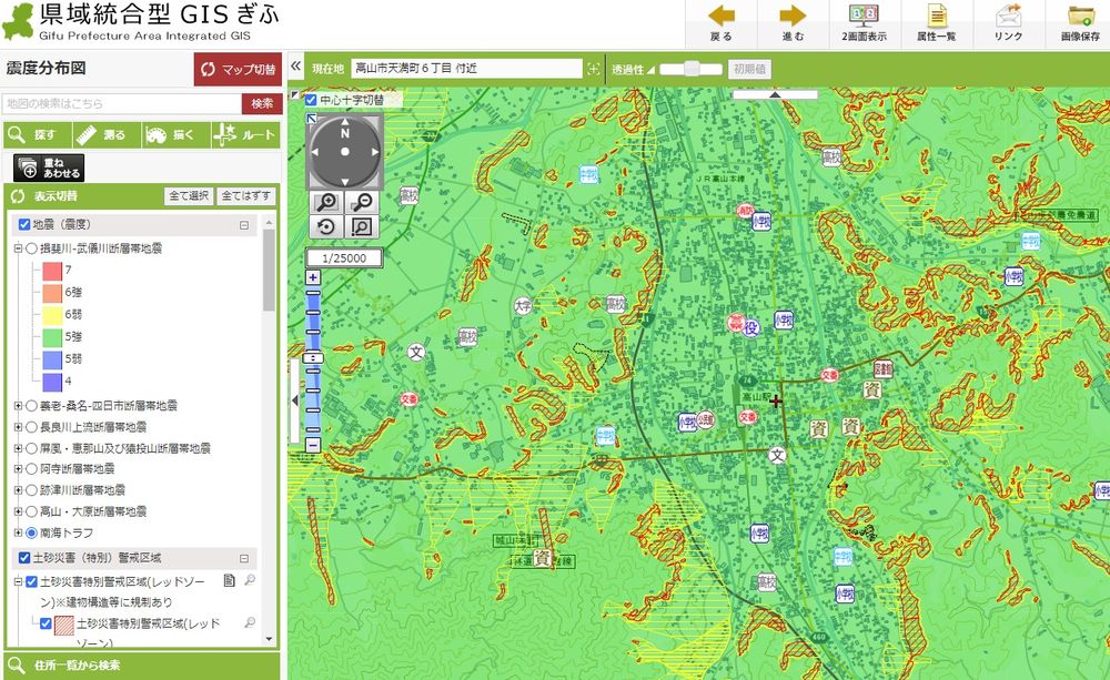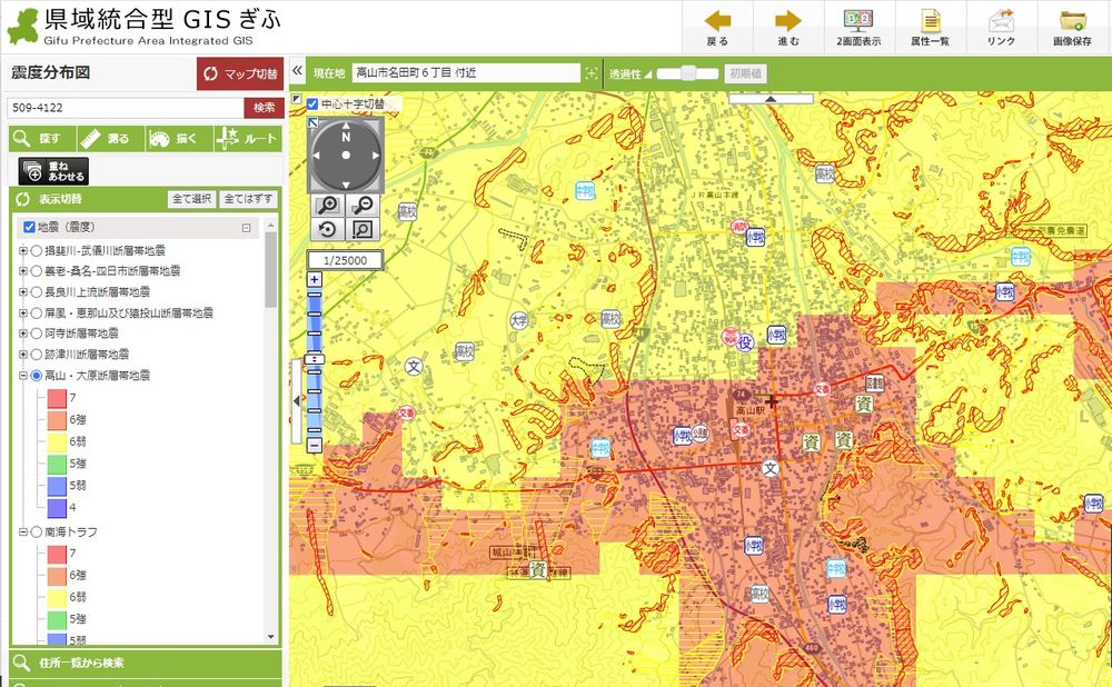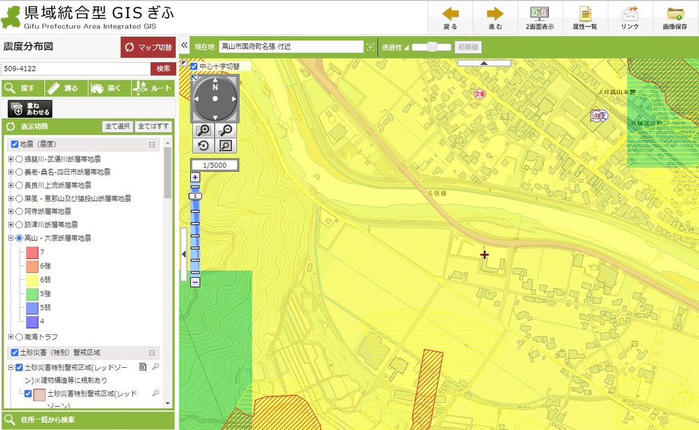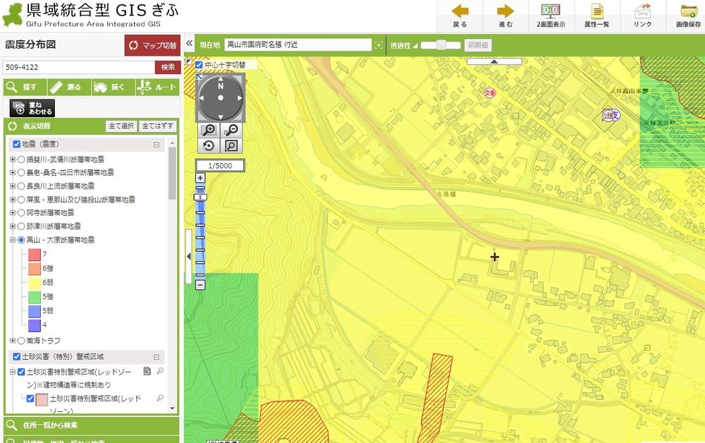 高山大原断層帯が動くと・・震度6弱想定(怖