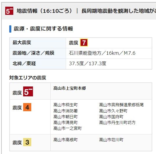 まず飛騨地方には「震度5弱」との報道が多数でしたので、皆様も「あれが震度5弱かぁ」と恐怖を刻まれたと感じます。