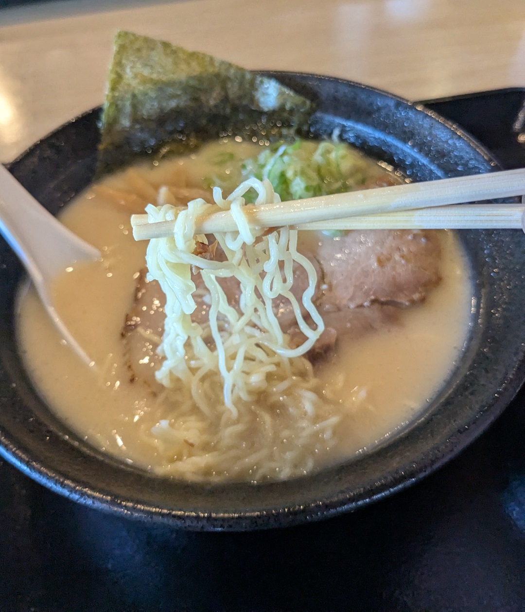 飛騨高山中華蕎麦は細ちぢれ麺。最近できた店で「豚骨ラーメン」頼んだら、細ちぢれ麺で・・まいっかw
