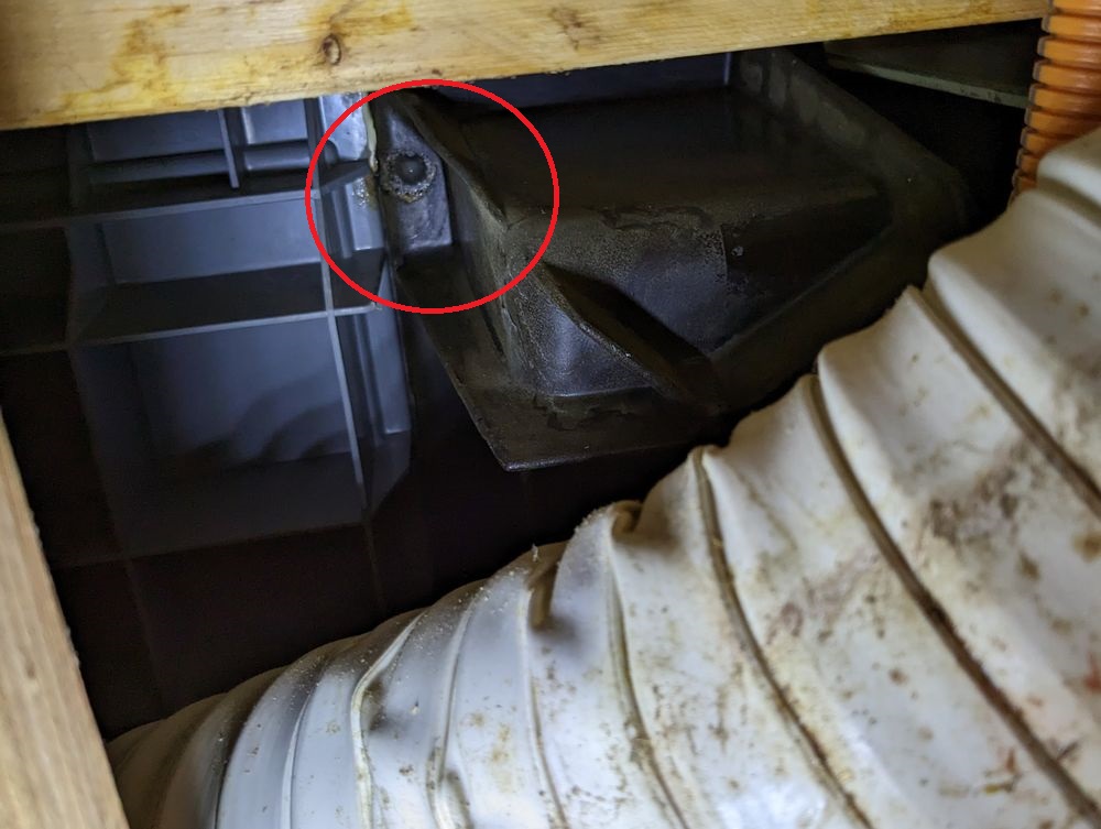 築15年、階上バスからの水漏れ案件。バスタブ下のボルトから漏れてるトコ目視出来たけど、これ施工ミスだなオイオイ(-_-;)