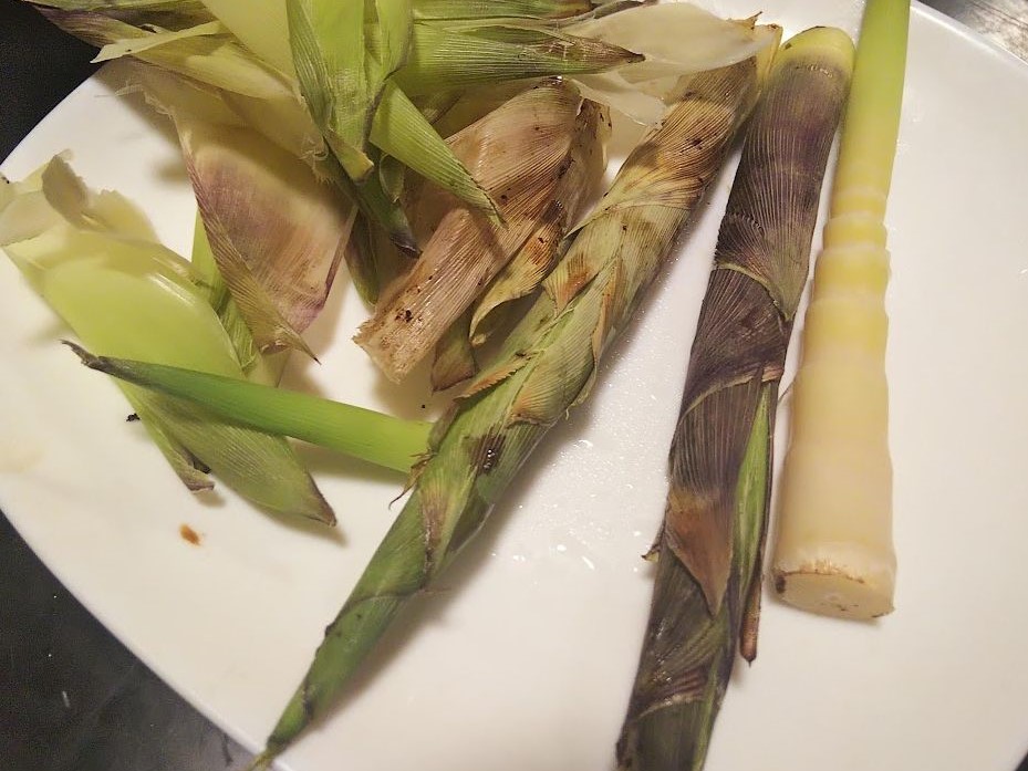 山の恵み。タケノコは皮付きのまま焼いて塩で頂く。飯テロ飛騨版 。