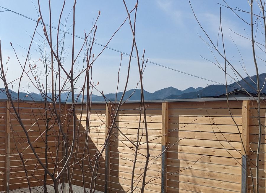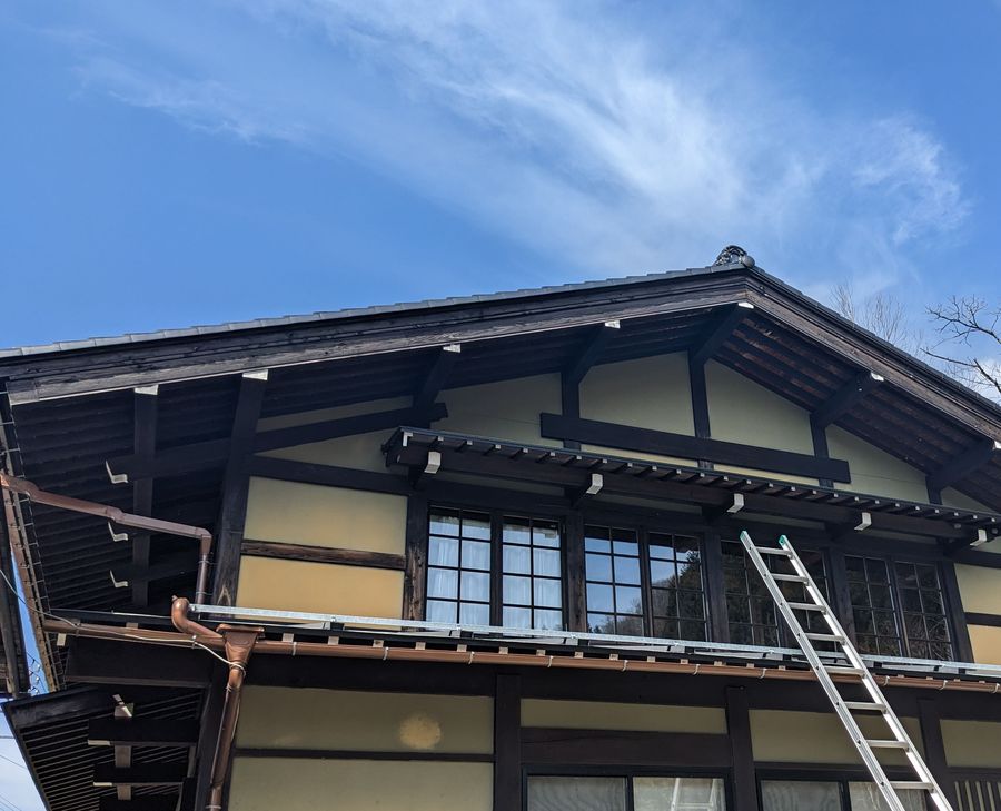 デスクワークの合間にメンテナンス。腕木で伸ばした深い軒がクール。