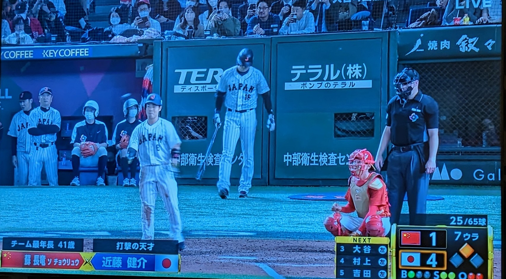 近藤選手越しの大谷サーン。遠近法バグってて草
