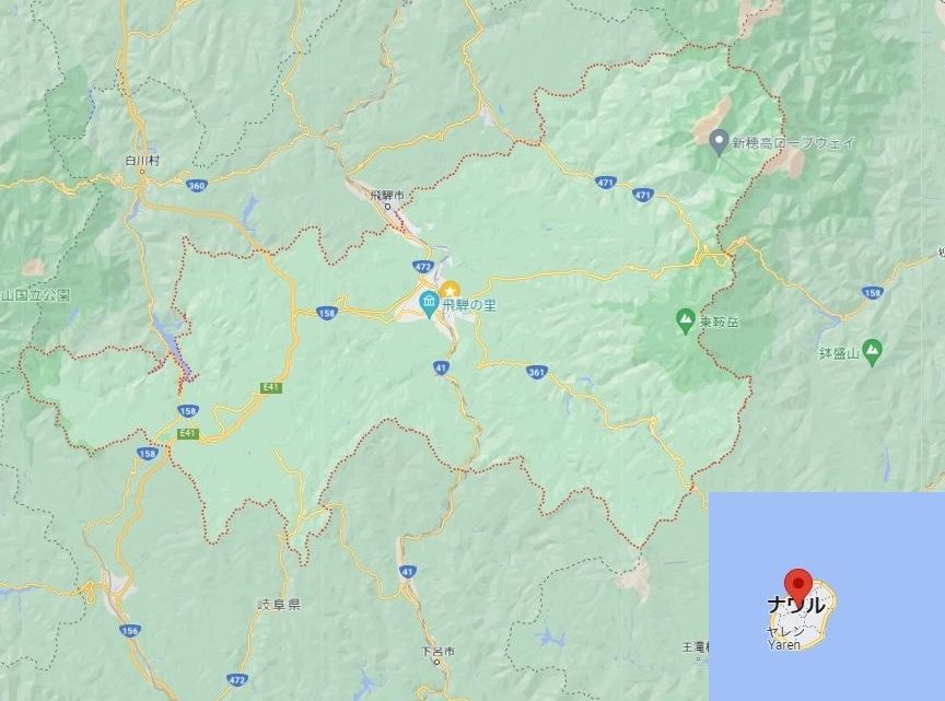 ナウル共和国と大きさ比べてゴメンナサイ。同じ縮尺ですが、岐阜県高山市です。東京都より大きいのでお許しください。