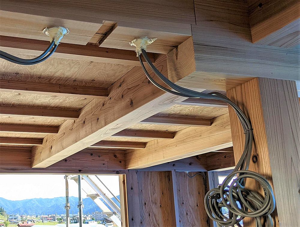 初めてお付き合いさせて頂く電気屋さん。会うなり「仲間内でアイズさんの現場は細かくて有名なので、色々教えてください」とか言いつつ詳細指示する前に桁上断熱貫通部の配線、上下で気密処理してあった。素晴らしいです。良い職方さんに出会えました^^