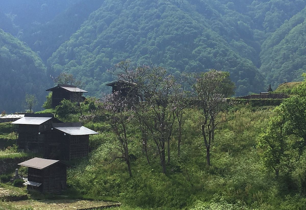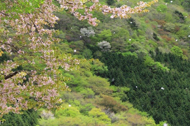 遅咲きの山桜が風に舞う@飛騨高山