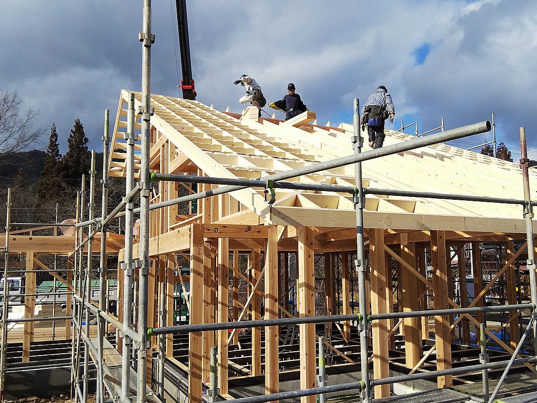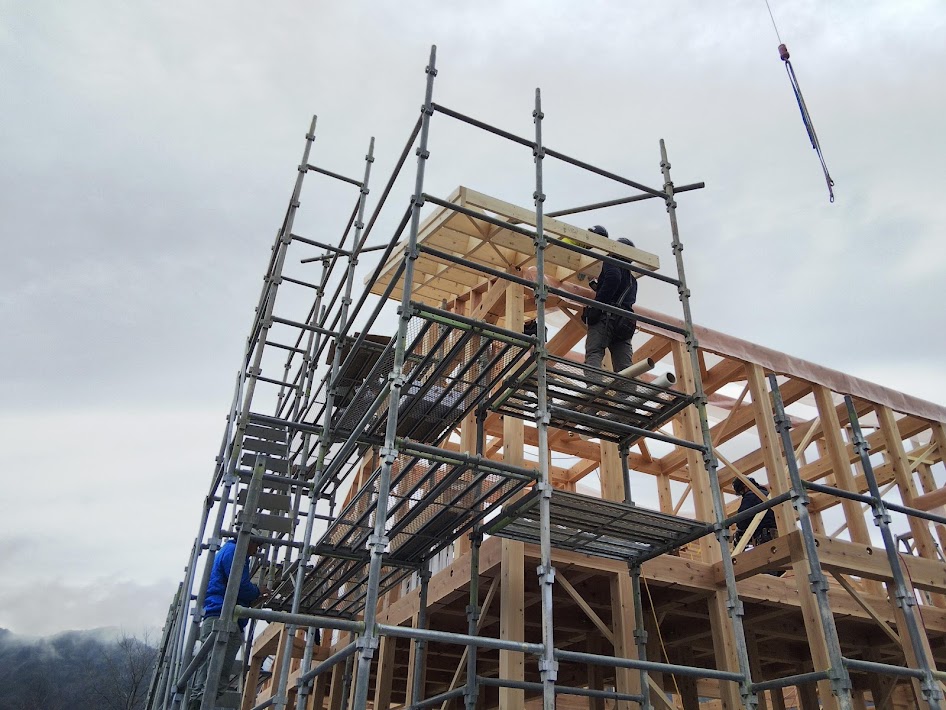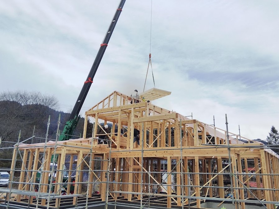 ツーバイの技術応用。自社ゲーブルパネル化棟上げ。