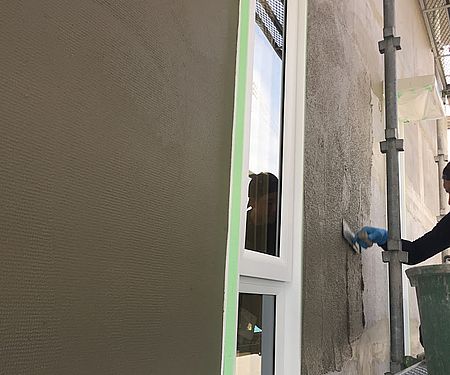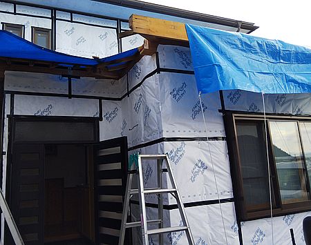 この透湿防水シートの上に通気層を作り外壁を仕上げますが
