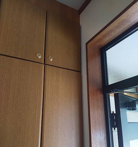 そぅ下地の石膏ボードも無く、先に下駄箱置いてから周りを仕上げた様です(笑