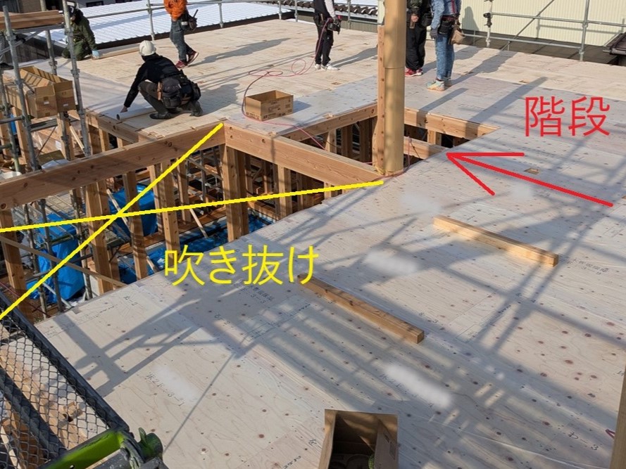 階段は吹き抜けであり水平耐力は無いので、床構面の検討は必須。
