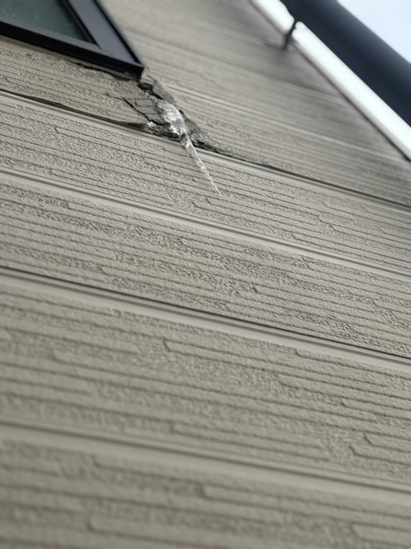 アルミ窓の躯体側結露による窯業サイディング爆裂。からのツララ育成(涙