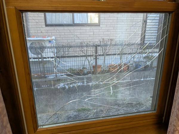 HURD木製ダブルハング窓・三層の内側割れました・・が押縁仕様なので、ガラス作ってサクッと交換いたしませう。
